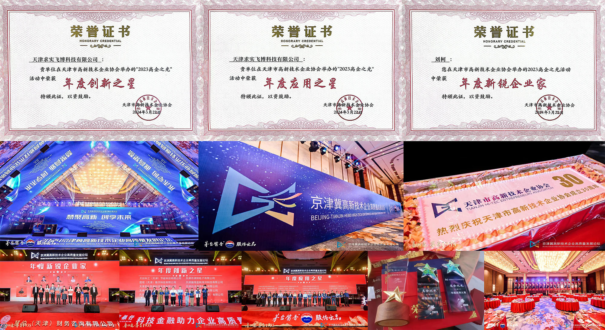 天津求實飛博科技有限公司,作為京津冀高新技術企業高質量發展論壇的合作伙伴,在”高企之光“評選活動中以其出色的業績與卓越的創新能力,斬獲了2023高企之光年度“創新之星”與“應用之星”兩項殊榮。